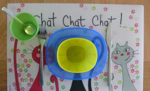 1 babybedje, 2 babystoelen, 2 kinderstoelen, opstapje in de badkamer, kinderbordjes, -bekers en –bestek