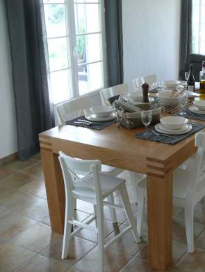 - heel ruim terras met lange teakhouten tafel en 10 stoelen